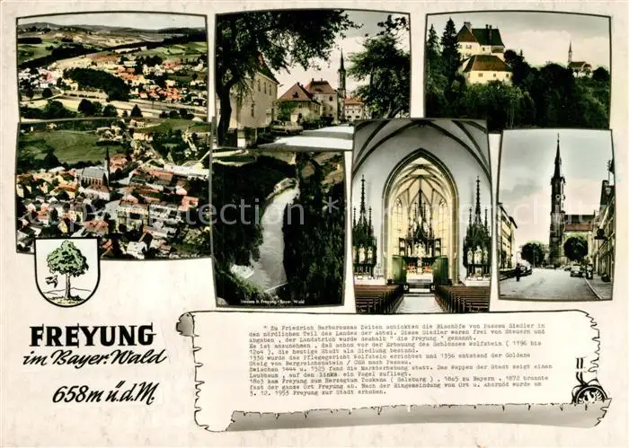 Freyung Kategorie Alte Ansichtskarten Postkarten bx49193 Freyung Innenstadt Kirche Innenansicht Schloss Stausee Bayerischer Wald Freyung postalisch gelaufen nach 1965 Erhaltung siehe scans [FriedD77]