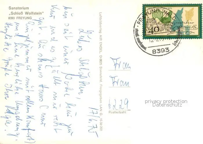 Freyung Sanatorium Schloss Wolfstein Fliegeraufnahme Freyung postalisch gelaufen 1975 Erhaltung siehe scans [WerneD78] WernPID7