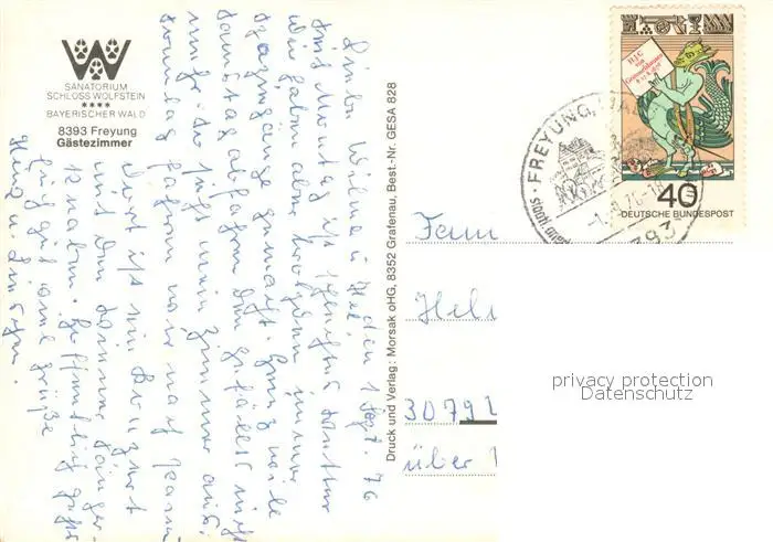 Freyung Sanatorium Schloss Wolfstein Gaestezimmer Freyung postalisch gelaufen 1976 Erhaltung siehe scans [FriedD77] Frierer