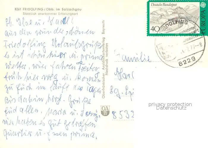Fridolfing Kategorie Alte Ansichtskarten Postkarten bx93981 Fridolfing Kirchen Seerosenteich Ortspartie Fridolfing postalisch gelaufen 1976 Erhaltung siehe scans [WerneD78]