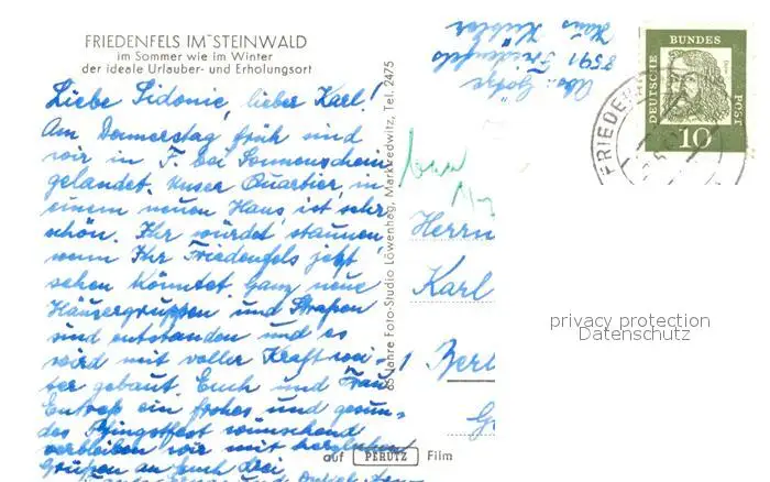 Friedenfels im Steinwald Friedenfels postalisch gelaufen 1962 Erhaltung siehe scans [WerneD78] WernPID7
