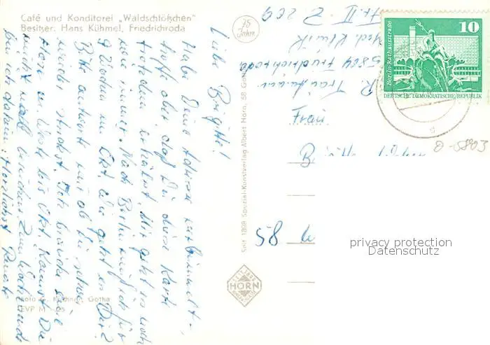 Friedrichroda Cafe Konditorei Waldschloesschen Friedrichroda postalisch gelaufen nach 1965 Erhaltung siehe scans [KathaD81] Kathoren