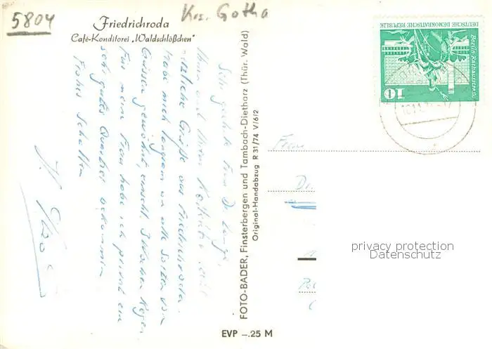 Friedrichroda Cafe Konditorei Waldschloesschen Friedrichroda postalisch gelaufen nach 1965 Erhaltung siehe scans [FriedD77] Frierer