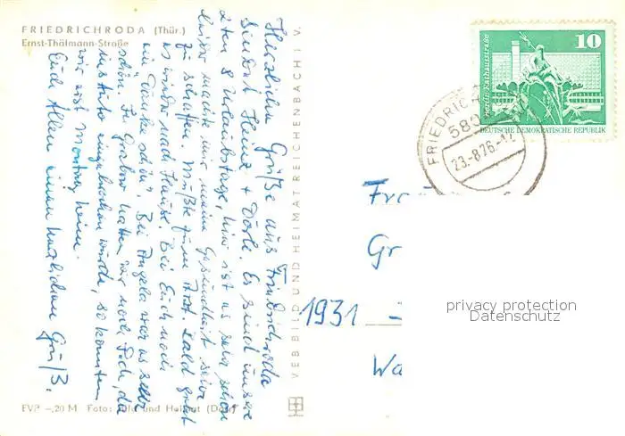 Friedrichroda Ernst Thaelmann Strasse Friedrichroda postalisch gelaufen 1976 Erhaltung siehe scans [KathaD81] Kathoren