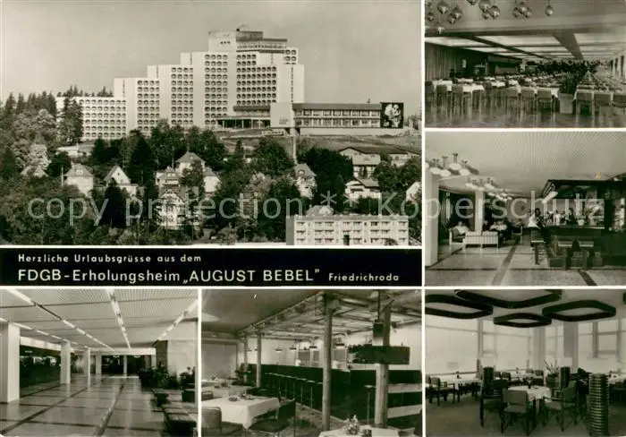 AK / Ansichtskarte Friedrichroda FDGB Erholungsheim August Bebel Empfangshalle Stollenbar Mehrzwecksaal Hallenbar Aussichtscafe Friedrichroda