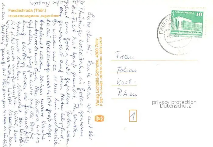 Friedrichroda FDGB Erholungsheim August Bebel Friedrichroda postalisch gelaufen 1987 Erhaltung siehe scans [FriedD77] Frierer