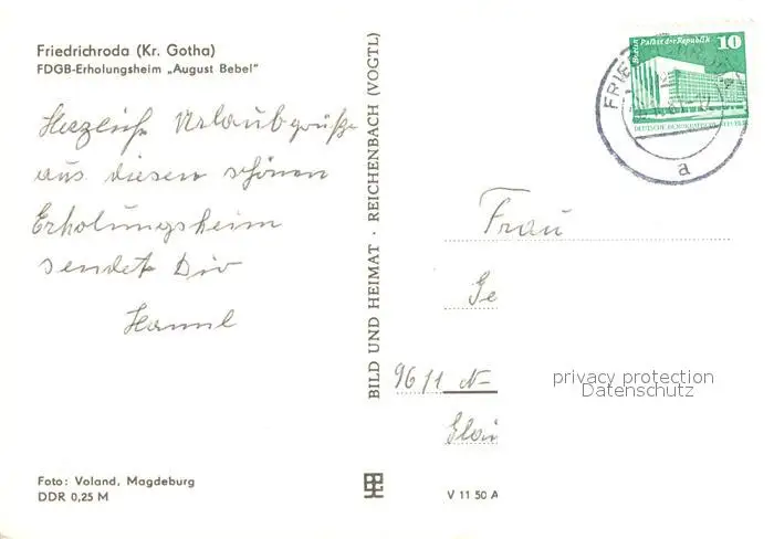 Friedrichroda FDGB Erholungsheim August Bebel Friedrichroda postalisch gelaufen 1981 Erhaltung siehe scans [FriedD77] Frierer