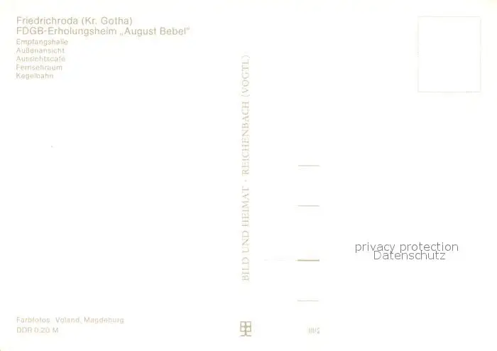 Friedrichroda FDGB Erholungsheim August Bebel Rezeption Aussichtscafe Fernsehraum Kegelbahn Friedrichroda postalisch nicht gelaufen nach 1965 Erhaltung siehe scans [WerneD78] WernPID7