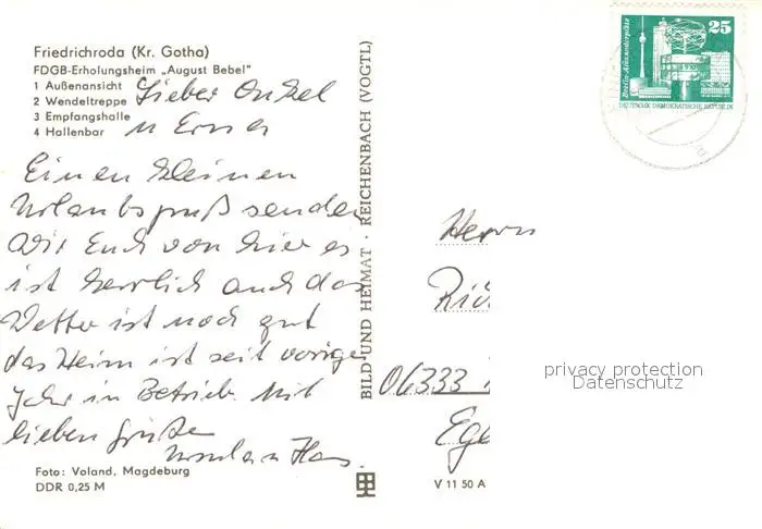 Friedrichroda FDGB Erholungsheim August Bebel Wendeltreppe Empfangshalle Hallenbar Friedrichroda postalisch gelaufen 1981 Erhaltung siehe scans [FriedD77] Frierer