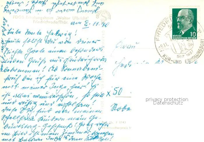 Friedrichroda FDGB Erholungsheim Walter Ulbricht Friedrichroda postalisch gelaufen 1970 Erhaltung siehe scans [KathaD81] Kathoren