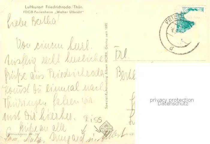 Friedrichroda FDGB Ferienheim Walter Ulbricht Friedrichroda postalisch gelaufen nach 1965 Erhaltung siehe scans [WerneD78] WernPID7