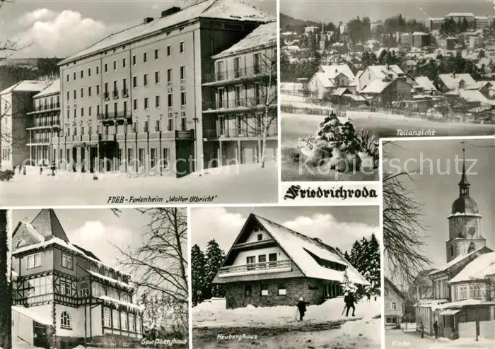 AK / Ansichtskarte Friedrichroda FDGB Ferienheim Walter Ulbricht Spiessberghaus Heuberghaus Kirche Friedrichroda