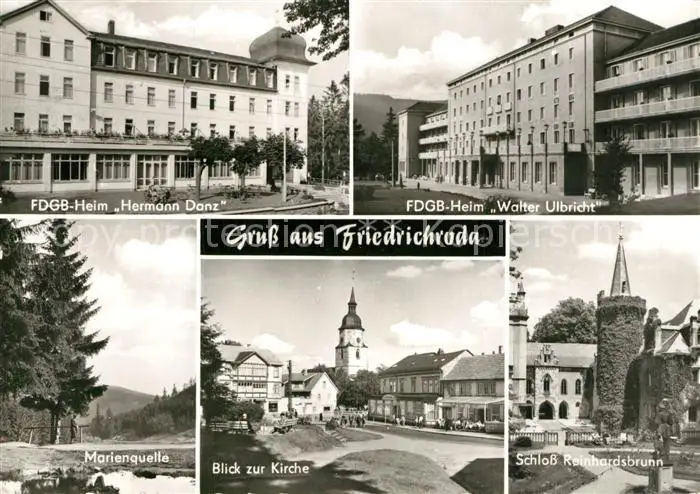 AK / Ansichtskarte Friedrichroda FDGB Heime Hermann Danz Walter Ulbricht Marienquelle Kirche Friedrichroda