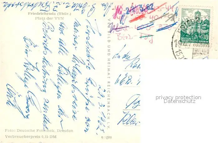 Friedrichroda Platz der VVN Kirche Friedrichroda postalisch gelaufen 1962 Erhaltung siehe scans [FriedD77] Frierer