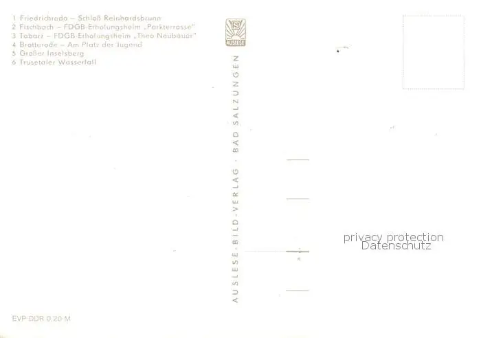 Friedrichroda Rund um den grossen Inselsberg Schloss Reinhardsbrunn FDGB Erholungsheime Platz der Jugend Brotterode Grosser Inselsberg Trusetaler Wasserfall Friedrichroda postalisch nicht gelaufen 1977 Erhaltung siehe scans [FriedD77] Frierer