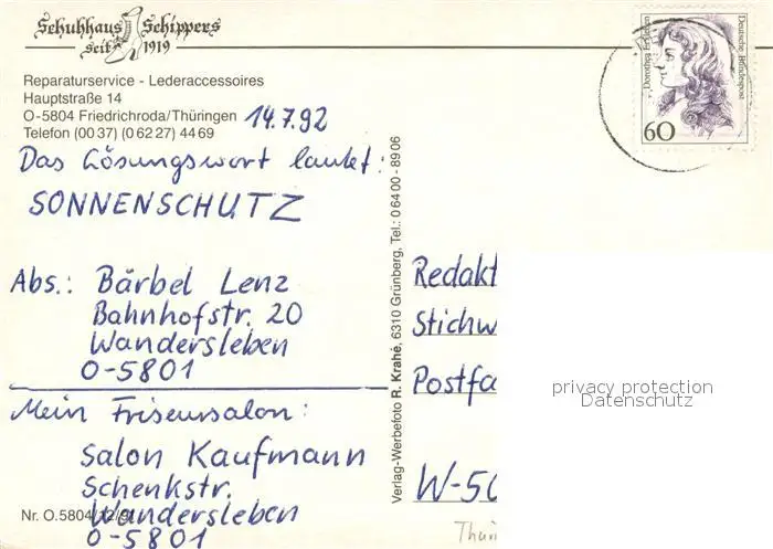 Friedrichroda Schuhhaus Schippers Friedrichroda postalisch gelaufen 1992 Erhaltung siehe scans [FriedD77] Frierer
