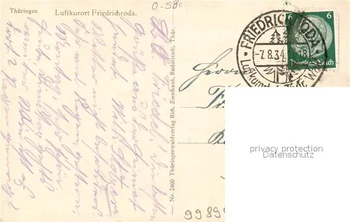 Friedrichroda Stadtpanorama Luftkurort Friedrichroda postalisch gelaufen 1934 Erhaltung siehe scans [FriedD77] Frierer