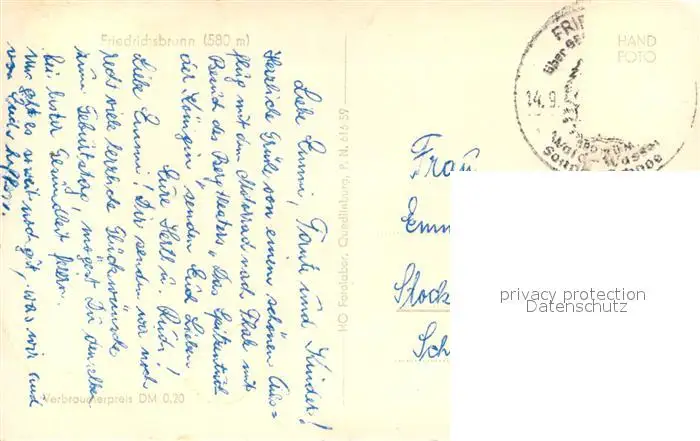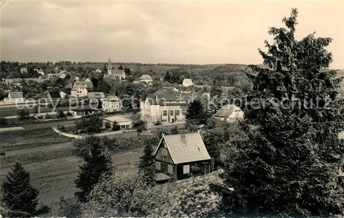 Friedrichsbrunn Harz Kategorie Alte Ansichtskarten Postkarten bx49098 Friedrichsbrunn_Harz Ortspanorama mit Kirche Friedrichsbrunn Harz postalisch gelaufen Erhaltung siehe scans [FriedD77]
