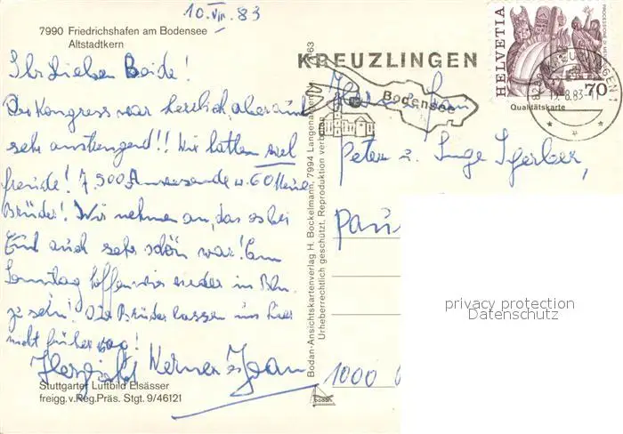 Friedrichshafen_Bodensee Altstadtkern Fliegeraufnahme Friedrichshafen Bodensee postalisch gelaufen 1983 Erhaltung siehe scans [WerneD78] WernPID7