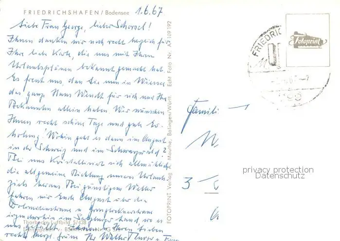 Friedrichshafen_Bodensee Fliegeraufnahme Friedrichshafen Bodensee postalisch gelaufen 1967 Erhaltung siehe scans [WerneD78] WernPID7