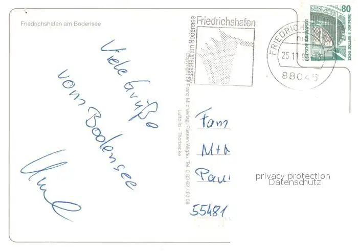 Friedrichshafen_Bodensee Fliegeraufnahme Schlosskirche Graf Zeppelin Haus Friedrichshafen Bodensee postalisch gelaufen nach 1965 Erhaltung siehe scans [NatalD47] NataID47
