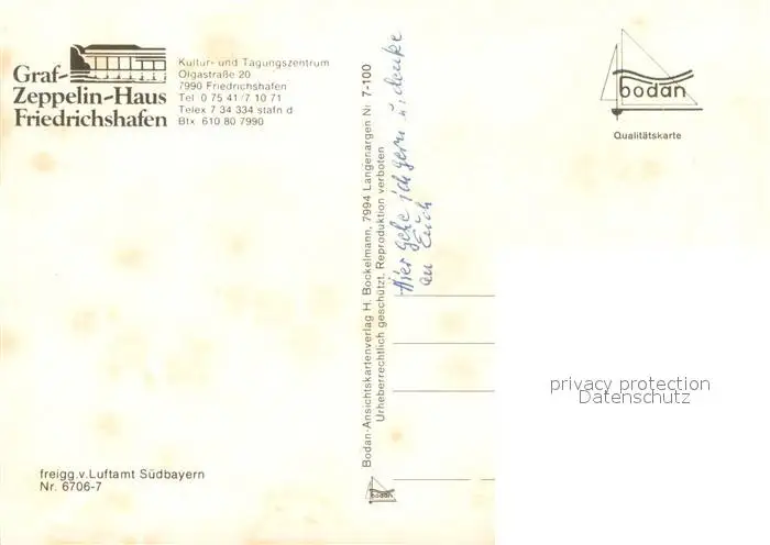 Friedrichshafen_Bodensee Graf Zeppelin Haus Fliegeraufnahme Friedrichshafen Bodensee postalisch nicht gelaufen nach 1965 Erhaltung siehe scans [WerneD78] WernPID7