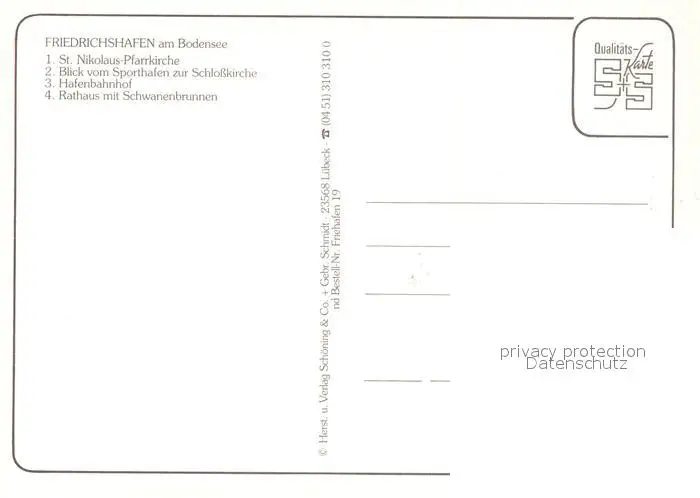 Friedrichshafen_Bodensee Nikolaus Pfarrkirche Schlosskirche Hafenbahnhof Rathaus Brunnen Friedrichshafen Bodensee postalisch nicht gelaufen nach 1965 Erhaltung siehe scans [KathaD81] Kathoren