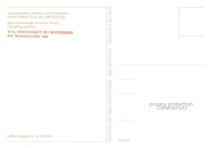Friedrichskoog_Nordseebad Appartementhaus Delphin mit Schwimmbad Friedrichskoog_Nordseebad postalisch nicht gelaufen nach 1965 Erhaltung siehe scans [WerneD78] WernPID7