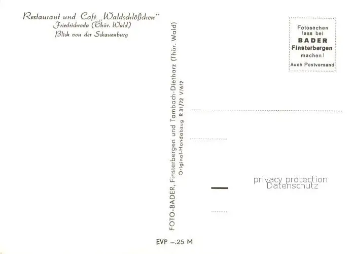 Friedrichsroda Restaurant Café Waldschloesschen Blick von der Schauenburg Friedrichsroda postalisch nicht gelaufen nach 1965 Erhaltung siehe scans [LiesaD40] LiesID40