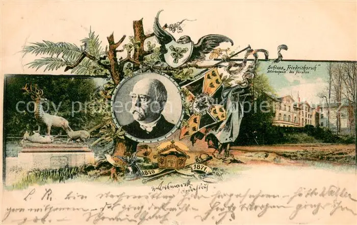 Friedrichsruh_Aumuehle Schloss Friedrichsruh u. Otto v. Bismarck Friedrichsruh_Aumuehle postalisch gelaufen 1905 Erhaltung siehe scans [LiesaD40] LiesID40