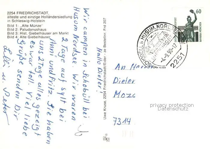 Friedrichstadt_Eider Alte Muenze Paludanushaus Giebelhaeuser Markt Friedrichstadt_Eider postalisch gelaufen 1990 Erhaltung siehe scans [KathaD81] Kathoren