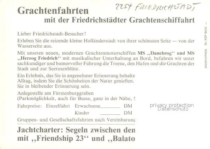 Friedrichstadt_Eider Hotel Holsteinisches Haus Grachtenfahrten mit MS Draneborg und MS Herzog Friedrich Friedrichstadt_Eider postalisch nicht gelaufen nach 1965 Erhaltung siehe scans [WerneD78] WernPID7
