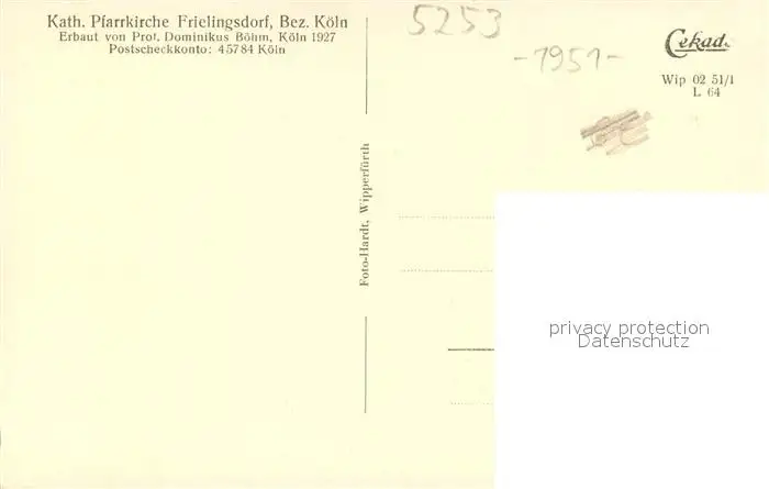 Frielingsdorf Kath. Pfarrkirche Aussenansicht Frielingsdorf postalisch nicht gelaufen 1951 Erhaltung siehe scans [LiesaD40] LiesID40