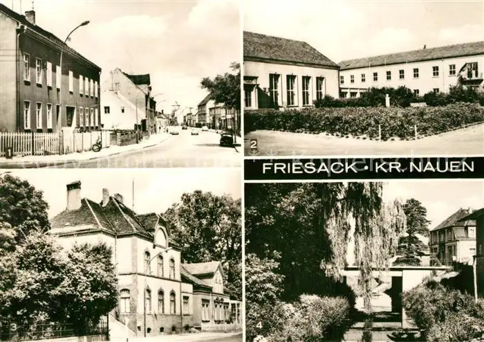 AK / Ansichtskarte Friesack Berliner Strasse Ingenieurschule fuer Landtechnik M. I. Kalinin Postamt Rhinkanal Friesack