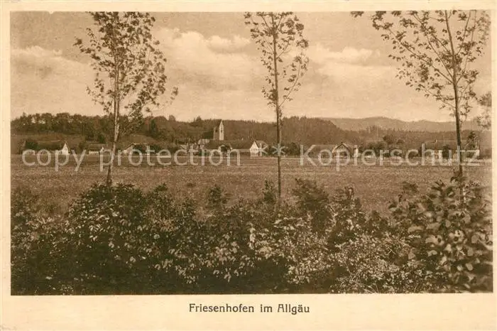 Friesenhofen_Allgaeu Kirche Ortspanorama Friesenhofen Allgaeu postalisch nicht gelaufen 1921-1965 Erhaltung siehe scans [KathaD81] Kathoren