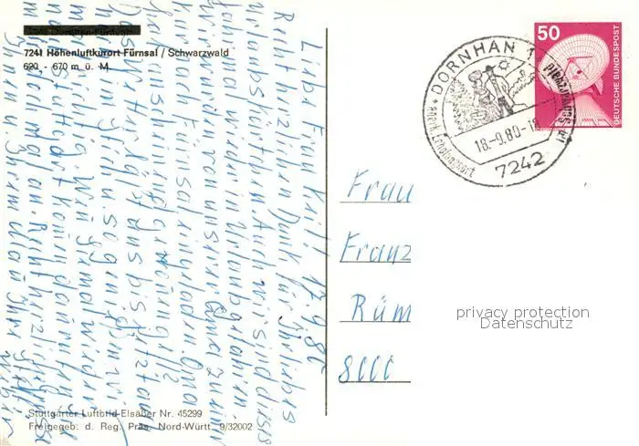 Fuernsal Kategorie Alte Ansichtskarten Postkarten bx54793 Fuernsal Fliegeraufnahme Fuernsal postalisch gelaufen 1980 Erhaltung siehe scans [NatalD47]