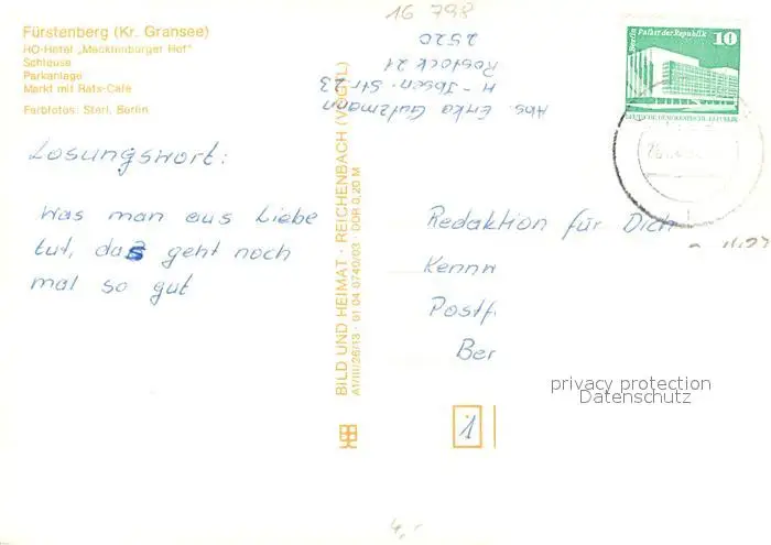 Fuerstenberg_Havel HO Hotel Mecklenburger Hof Schleuse parkanlage Markt mit Rats Cafe Fuerstenberg_Havel postalisch gelaufen nach 1965 Erhaltung siehe scans [WerneD78] WernPID7