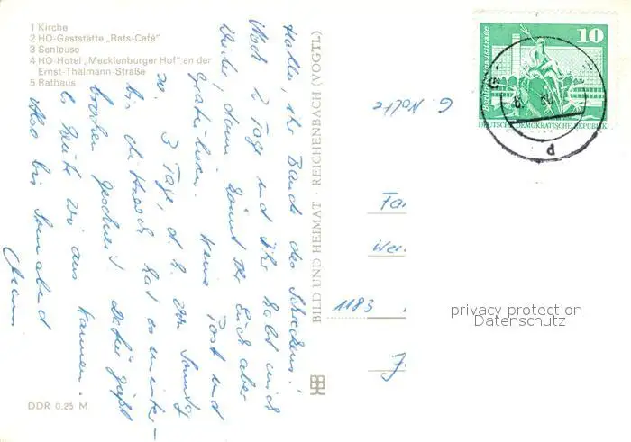 Fuerstenberg_Havel Kirche HO Gaststaette Ratscafé Schleuse HO Hotel Mecklenburger Hof Ernst Thaelmann Strasse Rathaus Fuerstenberg_Havel postalisch gelaufen 1980 Erhaltung siehe scans [FriedD77] Frierer