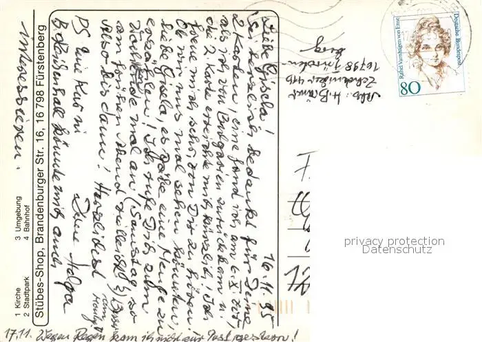 Fuerstenberg_Havel Kirche Umgebung Stadtpark Bahnhof Wappen Fuerstenberg_Havel postalisch gelaufen 1995 Erhaltung siehe scans [FriedD77] Frierer