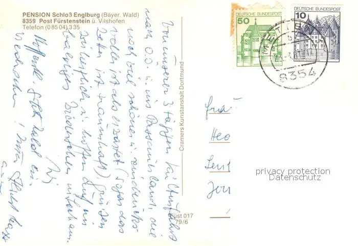 Fuerstenstein_Niederbayern Pension Schloss Englburg Bayerischer Wald Fuerstenstein_Niederbayern postalisch gelaufen 1981 Erhaltung siehe scans [FriedD77] Frierer