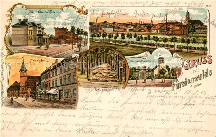 Fuerstenwalde_Spree Kategorie Alte Ansichtskarten Postkarten bx78982 Fuerstenwalde_Spree Neue Ulanen Kaserne Marktplatz Rauenstein Bergschloesschen Fuerstenwalde_Spree postalisch gelaufen 1903 Erhaltung siehe scans [WerneD78]