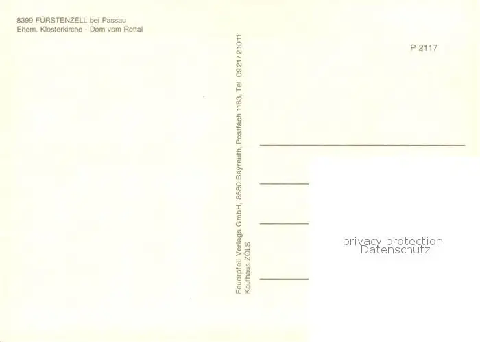 Fuerstenzell Stadtpanorama Kirche Schule Zentrum Fuerstenzell postalisch nicht gelaufen nach 1965 Erhaltung siehe scans [FriedD77] Frierer