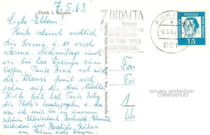 Fuerth_Bayern Marktplatz Maxbruecke Koenigstrasse Gustavstrasse Fuerth Bayern postalisch gelaufen 1963 Erhaltung siehe scans [KathaD81] Kathoren