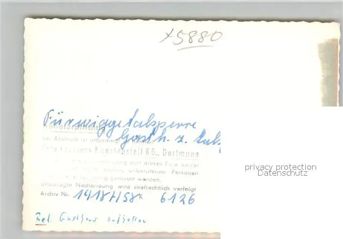 Fuerwiggetalsperre Gasthaus zur Talsperre Fuerwiggetalsperre postalisch nicht gelaufen 1958 Verlagsrohabzug (keine Postkartenrueckseite) Erhaltung siehe scans [WerneD78] Verlagsrohabzug (keine Postkartenrueckseite) WernPID7