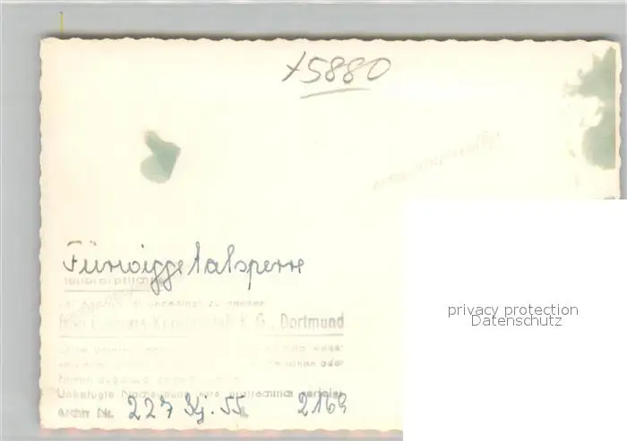 Fuerwiggetalsperre Staumauer Fuerwiggetalsperre postalisch nicht gelaufen 1955 Verlagsrohabzug (keine Postkartenrueckseite) Erhaltung siehe scans [WerneD78] Verlagsrohabzug (keine Postkartenrueckseite) WernPID7