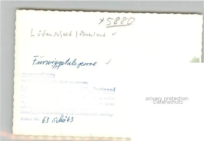 Fuerwiggetalsperre Staumauer Fuerwiggetalsperre postalisch nicht gelaufen 1963 Verlagsrohabzug (keine Postkartenrueckseite) Erhaltung siehe scans [WerneD78] Verlagsrohabzug (keine Postkartenrueckseite) WernPID7