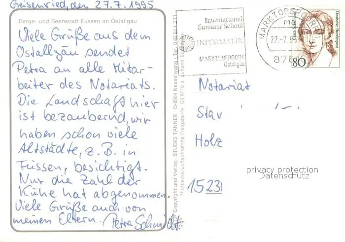 Fuessen_Allgaeu Berge- und Seenstadt Allgaeuer Alpen Fliegeraufnahme Fuessen Allgaeu postalisch gelaufen 1995 Erhaltung siehe scans [FriedD77] Frierer