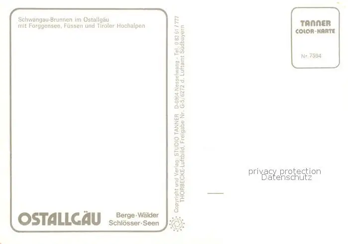Fuessen_Allgaeu Fliegeraufnahme Schwangau Brunnen Forggensee Fuessen Allgaeu postalisch nicht gelaufen nach 1965 Erhaltung siehe scans [KathaD81] Kathoren