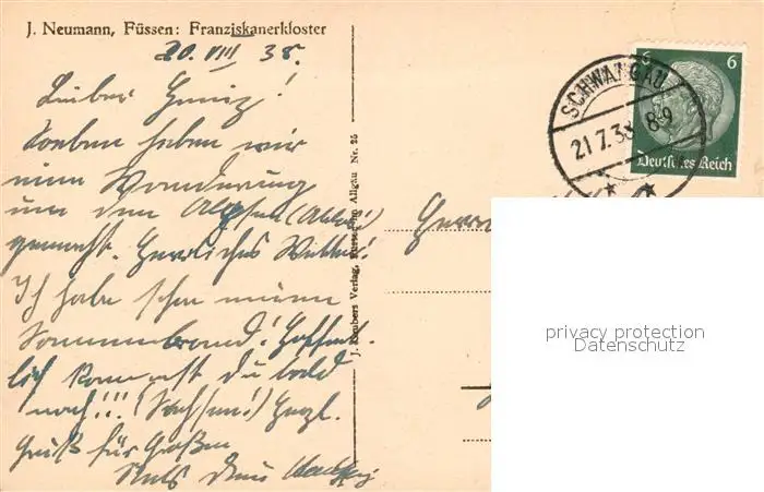 Fuessen_Allgaeu Franziskanerkloster Fuessen Allgaeu postalisch gelaufen 1938 Erhaltung siehe scans [KathaD81] Kathoren