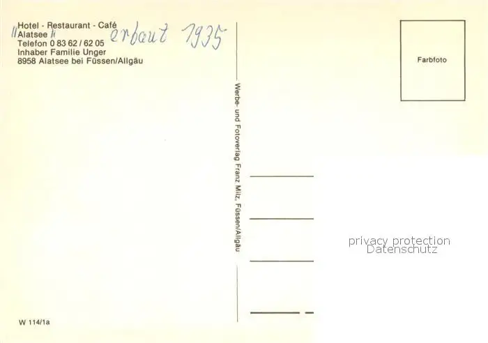Fuessen_Allgaeu Hotel Restaurant Cafe Alatsee Fuessen Allgaeu postalisch nicht gelaufen nach 1965 Erhaltung siehe scans [WerneD78] WernPID7